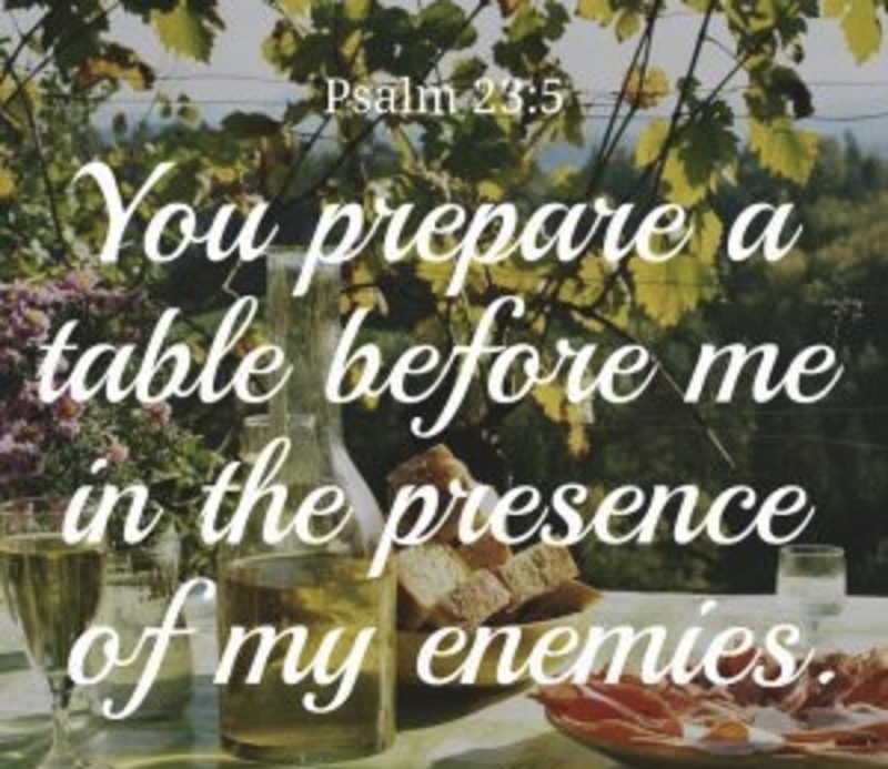 5 You prepare a table before me in the presence of my enemies; You anoint my head with oil; My cup runs over.